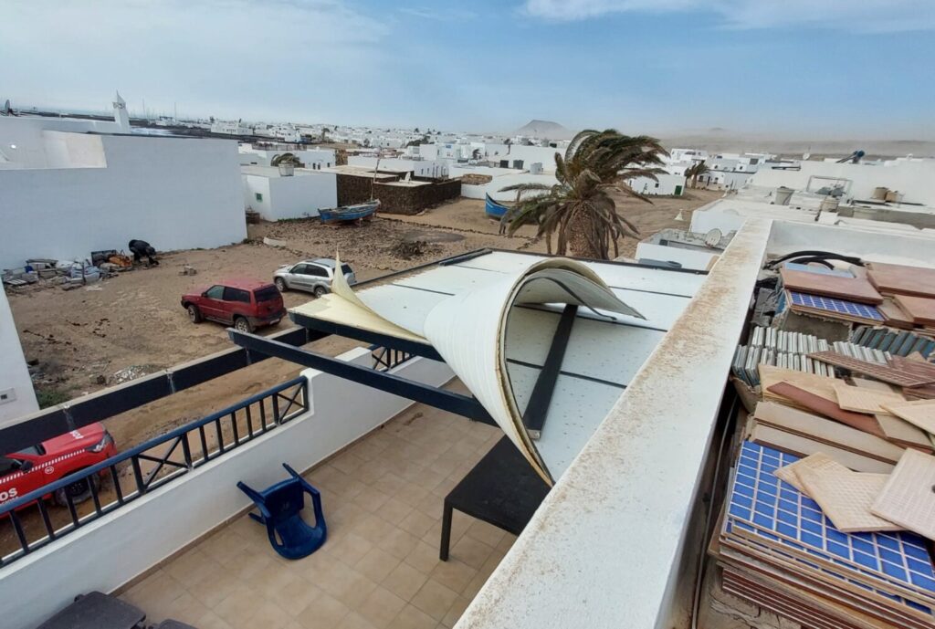 Destrozos del viento en La Graciosa.Los Bomberos de Lanzarote retiran una placa solar desplazada por el viento. Famara.Incidencias por el viento. La Graciosa.Decoración navideña de una calle de Tacoronte (Tenerife) derribada por el viento.EFE/Ramón de la RochaFiguras de los Reyes Magos de la decoración navideña de una calle de La Laguna (Tenerife). EFE/Ramón de la RochaLas rachas de viento mezcladas con la acumulación de ceniza volcánica del Tajogaite han provocado desperfectos en las calles y viviendas del barrio de Las Manchas /EFE/Luis G. MoreraEl viento ha desplazado las cenizas del Tajogaite /EFE/Luis G. MoreraEn la imagen se aprecia la tierra levantada por el viento en la zona de Guamasa, La Laguna. EFE/Miguel BarretoDestrozos y caída de parte de un muro como consecuencia del viento en Santa Úrsula (Tenerife) / Liliana Hennet