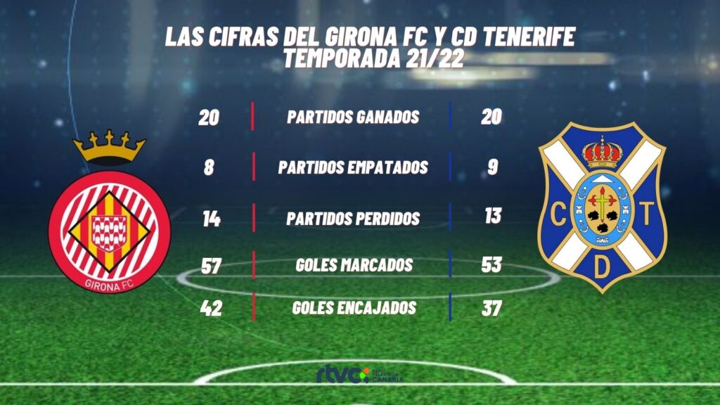 Mirando a la tabla clasificatoria, el CD Tenerife quedó en quinta posición con 69 puntos. Por su parte el Girona CF quedó en sexta posición con un total de 68 puntos en la temporada 2021/2022. Ambos disputaron un total de 42 partidos.