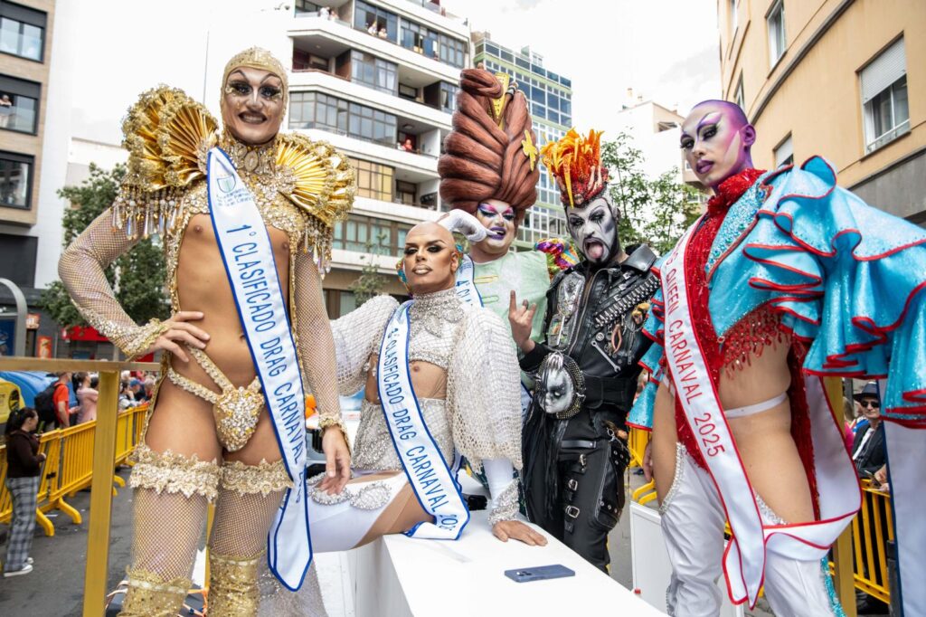 El desfile también contó con las Drag Queens, íconos del Carnaval. Ármek, Drag Queen 2025, estuvo acompañado de Drag Liak, Drag Gio, Drag Ácrux y Drag Sequins.