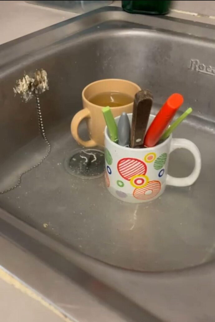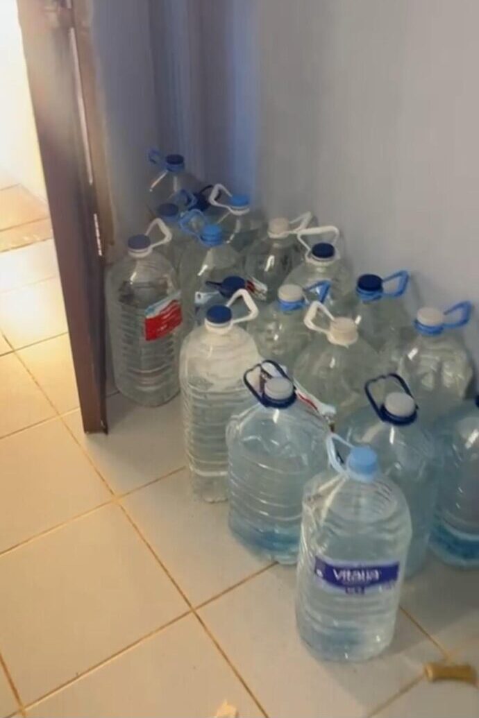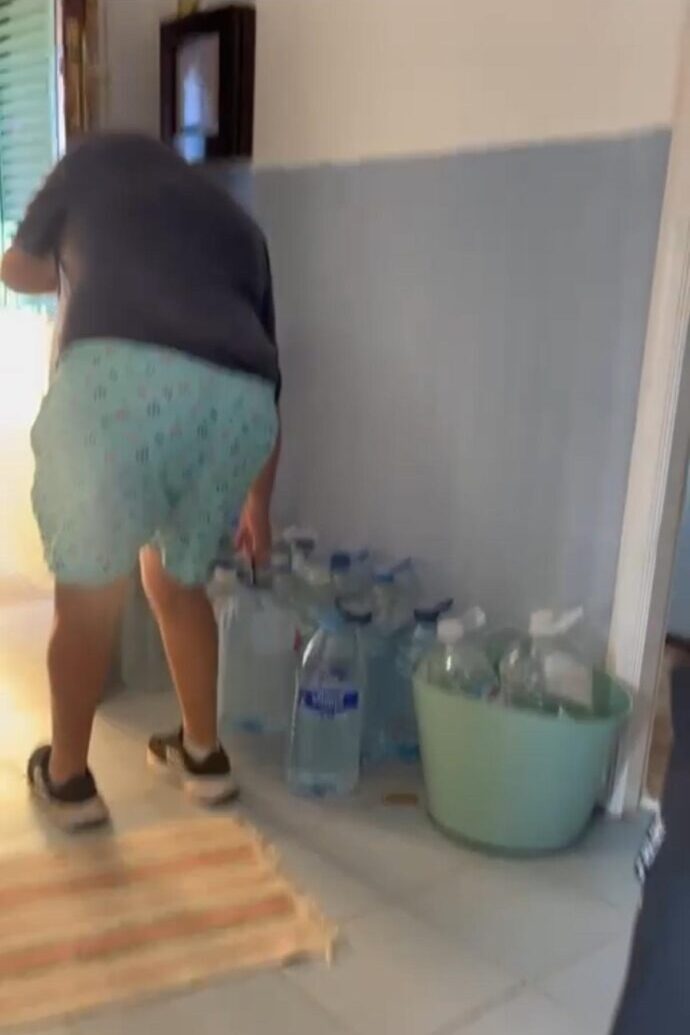 El salón de su casa está lleno de garrafas de agua que le entregan vecinos del barrio, mientras que el baño y la cocina dependen de baldes y cubos para las tareas más básicas: ducharse, lavar platos o asearse.