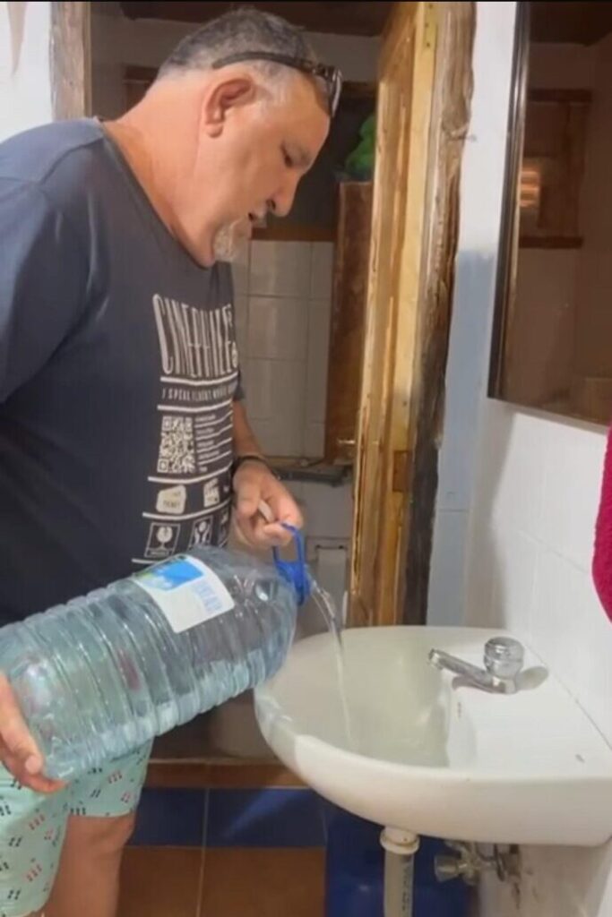Ramón ha sufrido tres ictus, tiene una discapacidad reconocida del 68%, y convive con problemas en los discos de la espalda que le dificultan caminar largas distancias. Aun así, a menudo debe hacerlo para conseguir agua. Su deterioro físico y emocional ha empeorado desde que perdió el acceso al suministro básico.