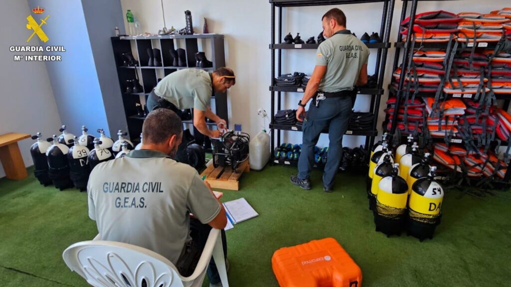 El Grupo Especial de Actividades Subacuáticas (GEAS) de la Guardia Civil ha llevado a cabo una serie de inspecciones en centros de buceo de las islas de Lanzarote, Fuerteventura y Gran Canaria, realizando un total de 67 inspecciones.
