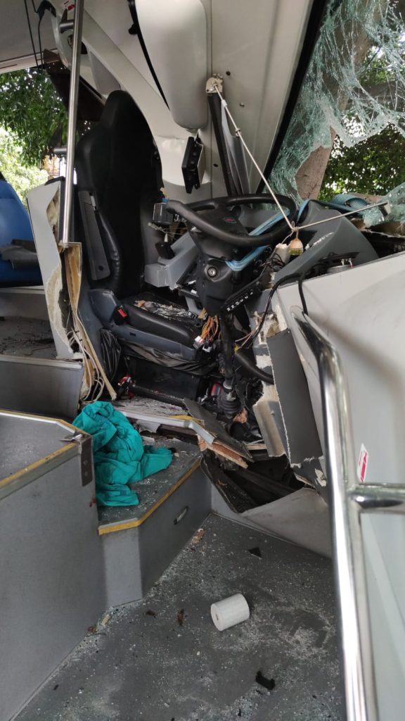 Alrededor de las 14:00 horas de este domingo, el conductor de una guagua de Global sufría un accidente al salirse de la vía en la Carretera del Norte, en Las Palmas de Gran Canaria, tras sufrir un infarto.