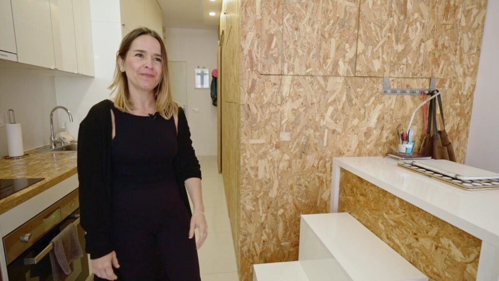 A pesar de ser una pequeña morada, el baño sí es amplio. El dormitorio es incluso una caja de madera que alberga una cama doble en la parte superior y cuyo descubrimiento será toda una sorpresa para los espectadores.