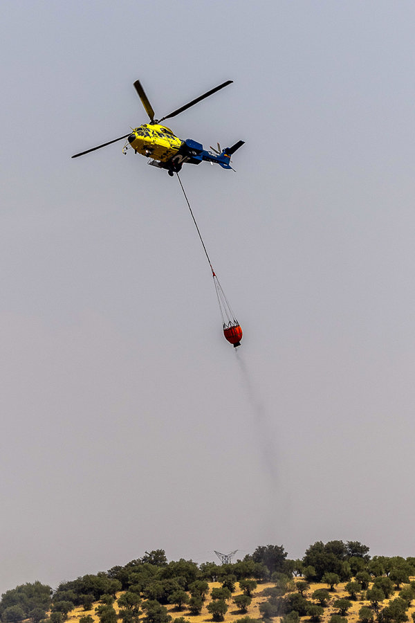 En la zona trabajan, un helicóptero pesado, dos aviones anfibios y uno de coordinación.
