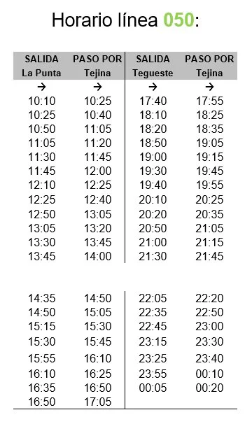 Línea 050 (La Laguna, Tegueste, Bajamar, Punta del Hidalgo)