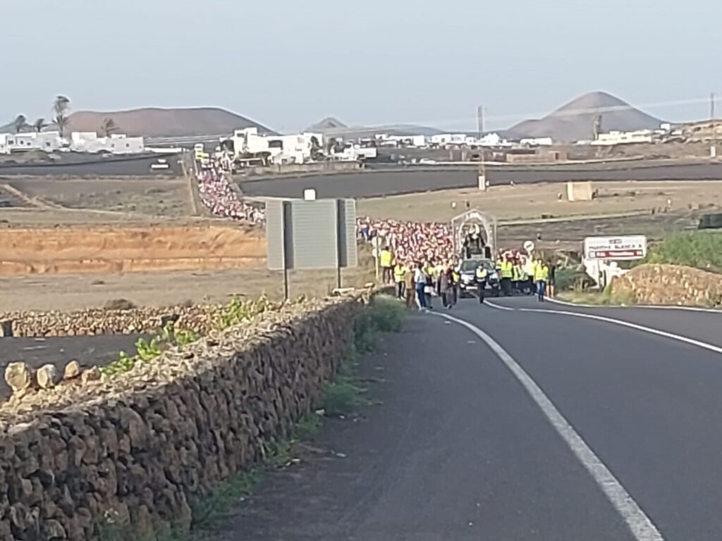 Primeros tramos de la Bajada de la Virgen. RTVC.Llegada de los peregrinos para acompañar a la imagen. RTVC.Bajada de la Virgen. Imagen RTVC.Bajada de la Virgen de Los Dolores. RTVC.Así acompañan los fieles a la virgen. RTVC.Peregrinos esperando a la virgen. RTVC.La redactora, María Herrera en una retransmisión en directo para los Servicios Informativos de RTVC. Transcurso de la Bajada a su paso por Tao. Imagen de Emergencias Lanzarote.Transcurso de la Bajada a su paso por Tao. Imagen de Emergencias Lanzarote.Transcurso de la Bajada de la Virgen. RTVC.Transcurso de la Bajada de la Virgen. RTVC.Transcurso de la Bajada de la Virgen. RTVC.Imagen de la Bajada saliendo de la zona de Vegueta. RTVC.Imagen de la Bajada a su paso por San Bartolomé. RTVC.La Bajada próximo a Arrecife. Imagen Emergencias Lanzarote. La Bajada próximo a Arrecife. Imagen Emergencias Lanzarote. Llegada de la virgen a Arrecife. Imagen. Emergencias Lanzarote. Llegada de la virgen a Arrecife. Imagen. Emergencias Lanzarote. Llegada de la Virgen de Los Dolores a Arrecife. Imagen de Emergencias Lanzarote. La Virgen de Los Dolores en su llegada a Arrecife. Imagen de Emergencias Lanzarote. La Virgen de Los Dolores en su llegada a Arrecife. Imagen de Emergencias Lanzarote. Bajada de la Virgen de Los Dolores. Imagen de Emergencias Lanzarote.