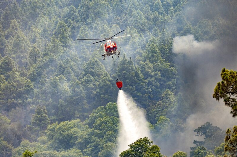Este domingo se desplegó un amplio dispositivo de medios aéreos y terrestres en los alrededores del Observatorio de Izaña para proteger las infraestructuras y evitar que pueda bajar por el pinar y avanzar más hacia el sur de la isla.