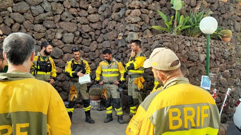 La brigada Brifor que se desplazó de La Palma a las reactivaciones del incendio de Tenerife, trabajó durante todo el día de ayer en el incendio, pernoctó en la isla y se disponen a tomar instrucciones de trabajo ahora en el Puesto de Mando Avanzado (PMA) para realizar labores de extinción en la zona de El Ravelo, en el municipio de El Sauzal.