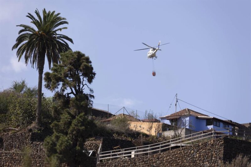 Los medios aéreos, ocho este viernes, destinados en las labores de extinción del incendio de Tenerife, cuyas reactivaciones en los últimos días obligó a elevar el nivel de emergencia y a la evacuación de más de 3.000 personas en Santa Úrsula y La Orotava, continúan descargando agua en la zona afectada para refrescarla.