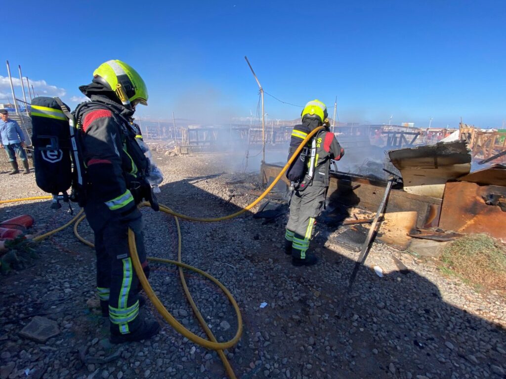 Los Bomberos de Gran Canaria del parque de Arinaga intervinieron este sábado en un incendio declarado en el asentamiento ilegal de Cueva Laya, en la bajada de Bahía de Formas en Gran Canaria.