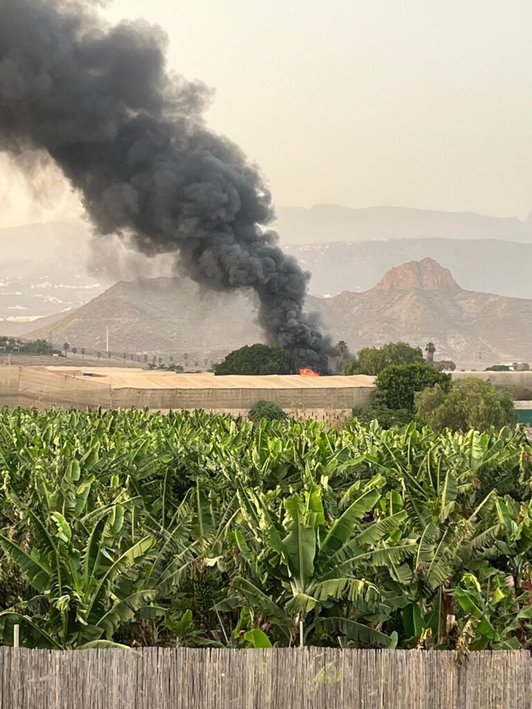 Una densa nube de humo sorprendió en la tarde de este domingo a muchos conductores en el sur de Tenerife. El incendio comenzó en la zona de Guaza, dentro de unos invernaderos. El fuego se originó en una nave de almacenamiento agrícola. Según las autoridades, no había viviendas cercanas ni riesgo para las personas, aunque el humo se pudo apreciardesde la TF-1.