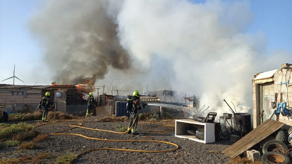 Un incendio en un invernadero de Arinaga afecta a una estructura de madera, basura y rastrojos. Los Bomberos del Consorcio de Emergencias de Gran Canaria han acudido a la zona para sofocar las llamas. En el dispositivo han utilizado 7.500 litros de agua.