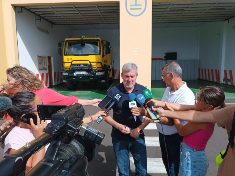 El incendio forestal declarado esta madrugada en el municipio de Puntagorda en la imagen tomada por el satélite Terra de la NASA se observa la larga columna de humo del incendio, que llega ya hasta la isla de El Hierro. EFE/ Nasa Imagen del incendio de Puntagorda captado desde un avión Reunión de coordinación con la presencia del consejero responsable de Emergencias, Manuel Miranda, el vicepresidente de Canarias, Manuel Domínguez y la consejera de Bienestar Social, Candelaria Delgado, junto a servicios de emergencias / 112 CanariasLa columna de humo desde el Valle de Aridante / May Navarro El ministro de Turismo, Héctor Gómez, junto al Delegado del Gobierno, Anselmo Pestana, haciendo seguimiento a los trabajos en el incendio de Puntagorda / Delegación de GobiernoBomberos de Gran Canaria se preparan para actuar en el incendio de Puntagorda (La Palma). El dispositivo está compuesto por 23 bomberos / Bomberos de Gran CanariaEl Cabildo de Lanzarote prepara una dotación de bomberos, un vehículo y una nodriza para ayudar en La Palma / Cabildo de Lanzarote Puntos calientes en el incendio de Puntagorda / NASACaptura de la imagen que detectan los satélites de los puntos calientes en la isla de La Palma / Nasa Imagen twitter Carlo Brusini (12:05) Imagen tomada desde la zona conocida como los garajes de Bellido (Tinizara, Barranco de las Viñas por referencias)El Delegado del Gobierno, Anselmo Pestana (izquierda), la consejera del Gobierno de Canarias Nieves Lady Barreto (2i), el ministro de Turismo (c), el presidente de Canarias, Fernando Clavijo (2d) y el consejero del Gobierno de Canarias, Mariano Hernández Zapata (d). Desde todas las instituciones siguen la evolución del incendio de La Palma / Delegación del GobiernoVista de la situación del incendio de Puntagorda / El Time Desde el Grantecan siguen con preocupación la evolución del incendio forestal de Puntagorda / Grantecan Incendio Puntagorda desde el helicóptero del GES / 112 CanariasRueda de prensa del presidente de Canarias para dar la última hora del incendio de La Palma. A las 10:30 las llamas han afectado a 140 hectáreas / Presidencia de CanariasLa Guardia Civil está siguiendo al detalle e investigando el incendio de Puntagorda / Guardia Civil Imagen Guardia Civil La Guardia Civil también está interviniendo en los controles del incendio de Puntagorda / Guardia Civil Imagen Ayoze Barroso. La vista del incendio de Puntagorda desde FuencalienteEFE/Miguel Calero Un incendio forestal se ha declarado esta madrugada en el municipio de Puntagorda, en la isla de La Palma, ha afectado a varias viviendas y ha llevado a la evacuación de 32 vecinos de las proximidades, EFE/Miguel CaleroEl presidente de Canarias, Fernando Clavijo, desde CECOPIN La Palma para tener información de primera mano sobre las actuaciones del operativo que trabaja en el incendio de Puntagorda Un helicóptero lanza agua sobre las llamas del incendio forestal que comenzó esta madrugada en el municipio palmero de Puntagorda, y que ha obligado a varias viviendas y ha llevado a la evacuación de 32 vecinos de las proximidades. EFE/Miguel CaleroImágenes AtbrifLa columna de humo del incendio forestal es visible desde distintos puntos de la isla de La PalmaEl primer contingente de refuerzo del dispositivo desplegado en #IFPuntagorda se han desplazado a La Palma desde TenerifeImágenes vía Twitter ElmorrazoImágenes vía Twitter ElmorrazoFotografía vía Twitter ATBRIFImágenes vía Twitter ElmorrazoEl incendio se originó en una zona próxima a viviendas Imagen vía Twitter Ricardo Mariano