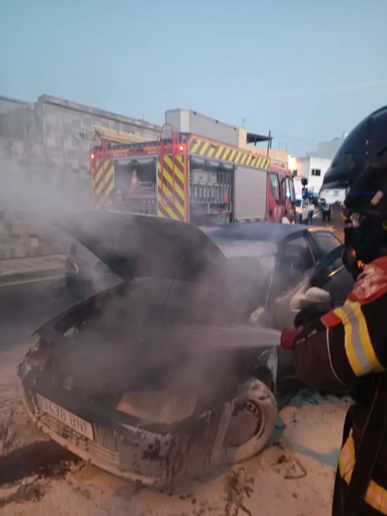A primera hora de esta mañana, los bomberos del Consorcio de Seguridad y Emergencias de Lanzarote tuvieron que intervenir en el incendio de un vehículo en San Bartolomé.