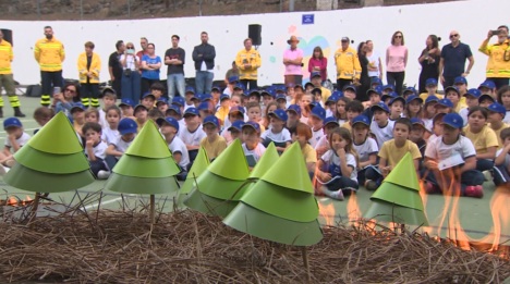 La jornada tuvo también como protagonista la formación práctica mediante una demostración ante los niños y jóvenes del colegio Lola Massieu de La Angostura (Santa Brígida). Estuvieron acompañados por el equipo docente y la directora, Virginia Santana Luri. Participaron en las actividades divulgativas en la que se empleó fuego real y que recrea el comportamiento de los incendios forestales en una maqueta.