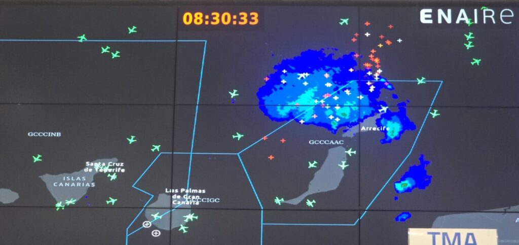 Asimismo, durante la mañana del miércoles Controladores Aéreos avisaba de núcleos tormentosos al norte de Lanzarote que obligó a la desviación de varios vuelos de su ruta.