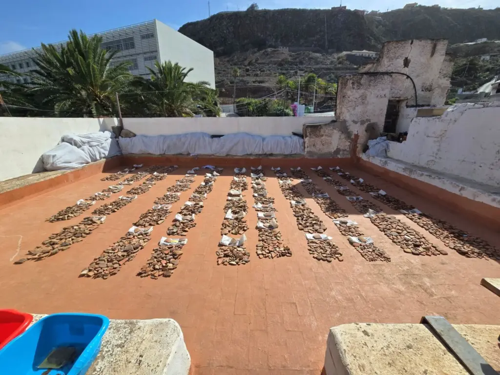 Para evitar la pérdida irreversible de información, se procedió a la recogida y al estudio pormenorizado en laboratorio de los materiales arqueológicos localizados en superficie. Entre los vestigios recuperados figuran fragmentos de formas azucareras —algunos con sellos de alfar—, cerámica canaria a mano, cerámica a torno, piezas de cerámica roja con restos de mortero y grandes recipientes de almacenamiento.
