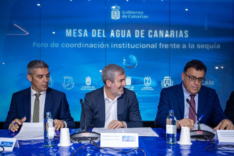 Clavijo ha realizado estas manifestaciones en el marco de la primera Mesa del Agua de Canarias, un foro institucional promovido por la Consejería de Política Territorial, Cohesión Territorial y Aguas del Gobierno de Canarias en el que el propio Gobierno, cabildos y ayuntamientos han analizado la situación actual respecto al ciclo del agua, al tiempo que han propuesto diferentes líneas de trabajo común para mitigar los efectos de la sequía y su consecuencia en el abastecimiento de agua.