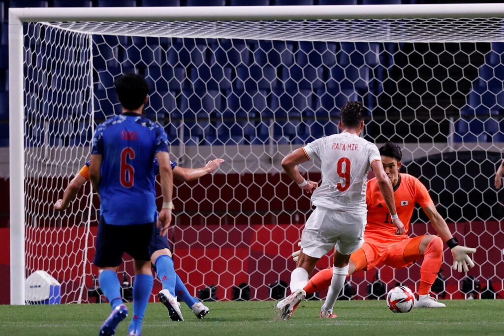 Oyarzabal no estuvo fino en la primera mitad y a su rescate trató de acudir Rafa Mir. El de Cartagena se granjeó la titularidad tras su hat trick ante Costa de Marfil y fue a probar suerte en la portería nipona en el minuto 39. Mir le descerrajó un disparo raso a Kosei Tani tratando de sorprenderle bajo las piernas, pero el cancerbero japonés fue más inteligente que lo que Rafa Mir creía y atrapó el esférico.
