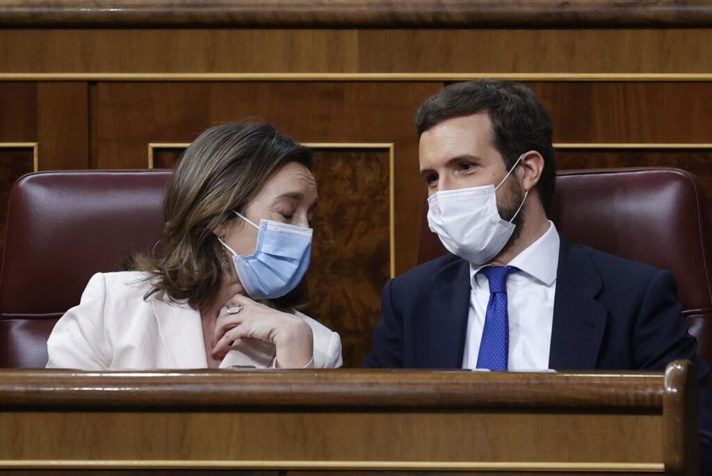 Después, Cuca Gamarra, que ha preguntado a la vicepresidenta primera, Nadia Calviño, ha dejado «constancia» en nombre de su grupo del «gran respeto y agradecimiento» al ya ausente «presidente del PP, don Pablo Casado Blanco».