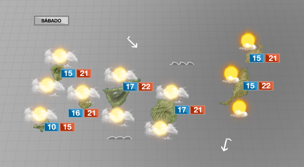 GRAN CANARIA: Intervalos de nubes bajas durante la mañana por el norte, e intervalos de evolución en medianías. Nos podrán dejar algunas gotas. El ambiente más soleado en la costa oeste. Temperaturas agradables, y viento variable flojo.