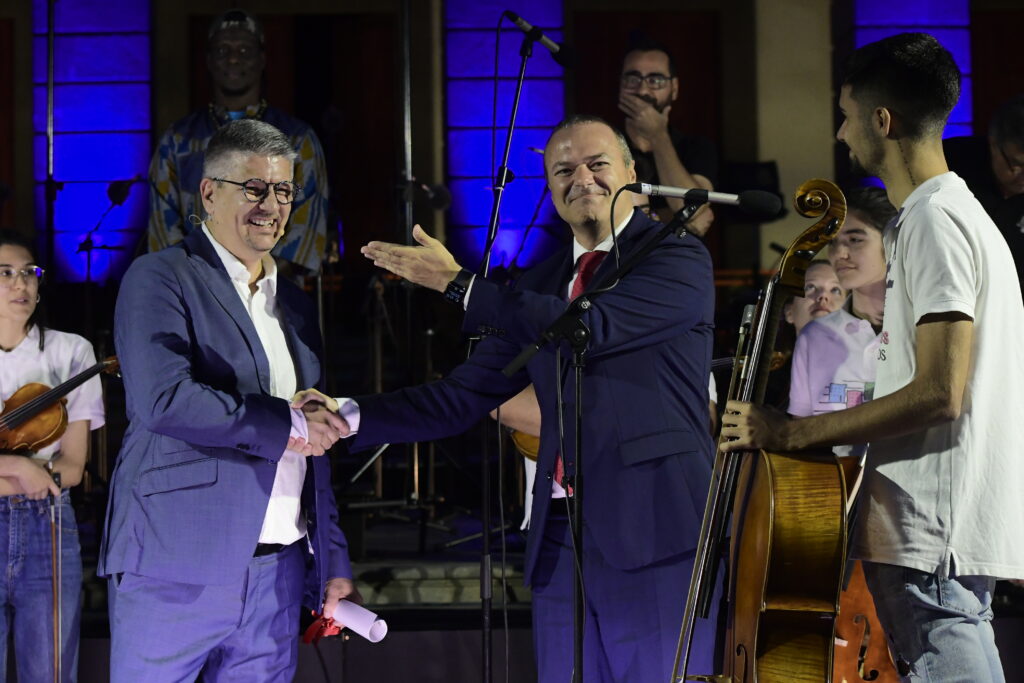 Brito ha estado arropado una veintena de alumnos y alumnas de Barrios Orquestados. El director del proyecto comunitario dio el pistoletazo de salida al programa de actos previsto para el 544 aniversario de la ciudad