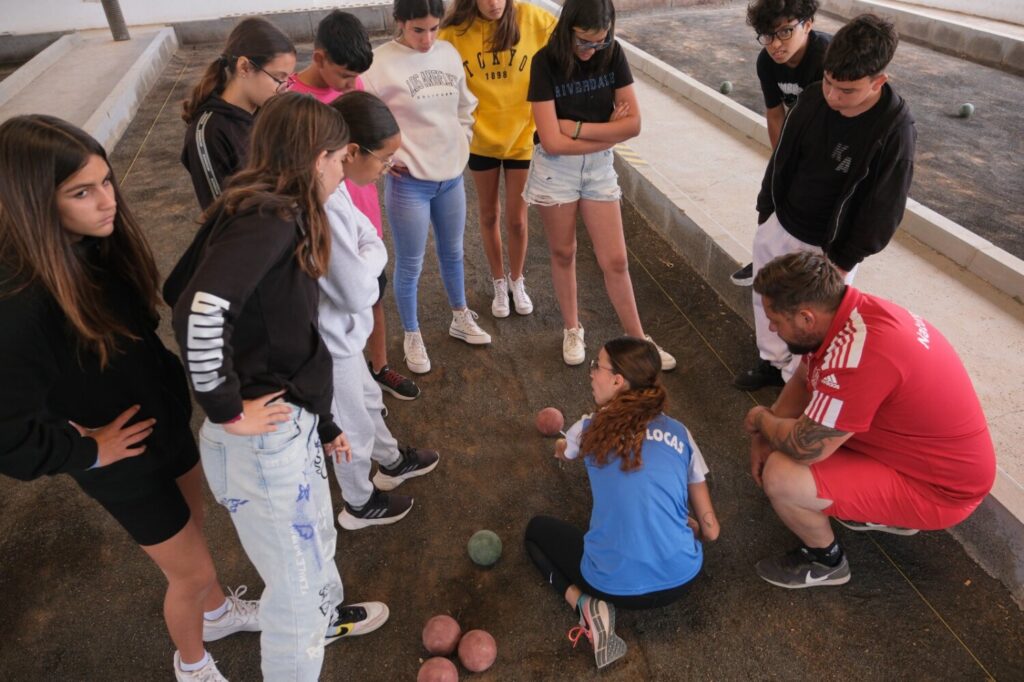 Con motivo de la celebración de Semana Canaria de Deportes Autóctonos alumnos del IES Puerto Cabras Rafael Báez conocieron la bola canaria