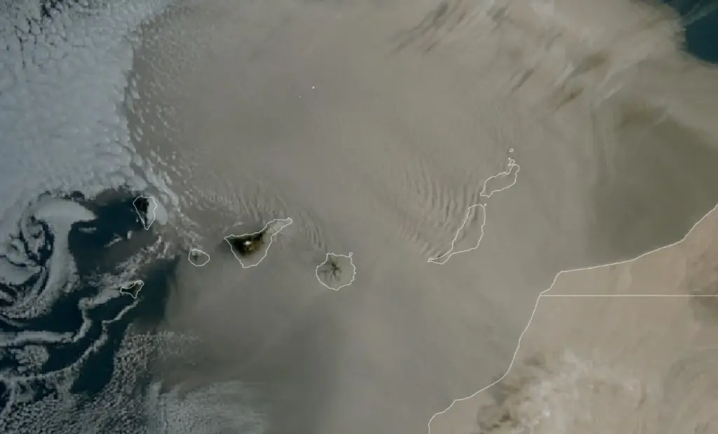 El episodio tiene su origen en una tormenta de arena generada en Argelia, con un impresionante frente de más de 1.000 kilómetros de longitud. La nube de polvo ya ha hecho su entrada en el archipiélago por las islas más orientales, Lanzarote y Fuerteventura, y se irá extendiendo de forma gradual al resto del territorio.