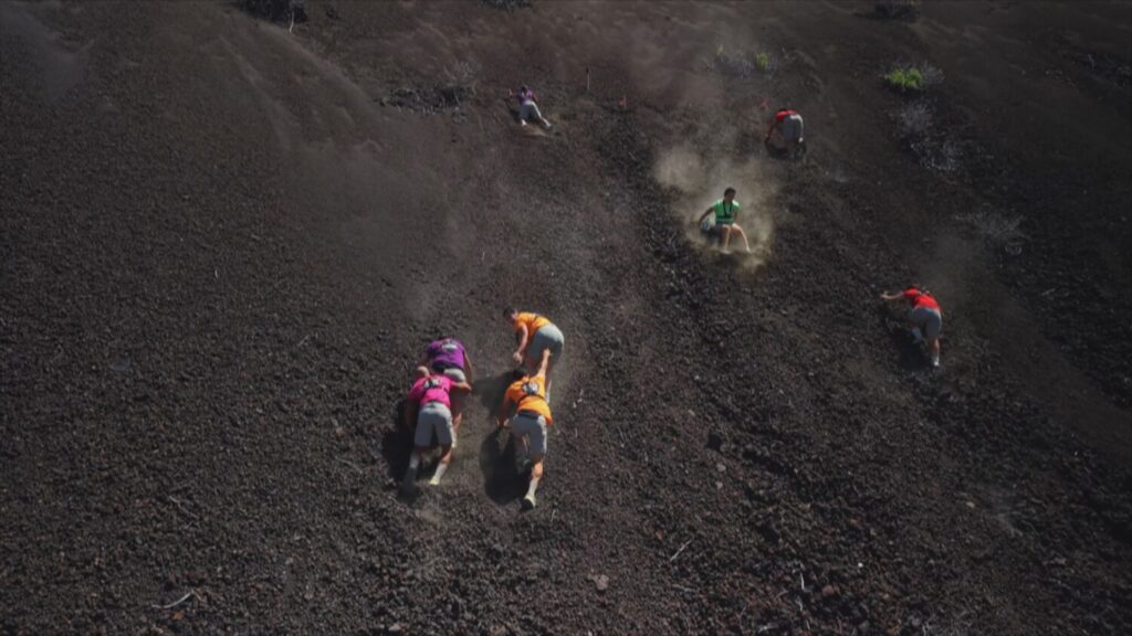 Más tarde, sobre el Malpaís del Volcán Lomo Negro, fruto de una potente erupción en siglo XVI, los concursantes jugarán la carrera por la antorcha y tendrán que superar la prueba más complicada. Los participantes se arrastrarán por el picón de este volcán, midiendo sus resistencia.