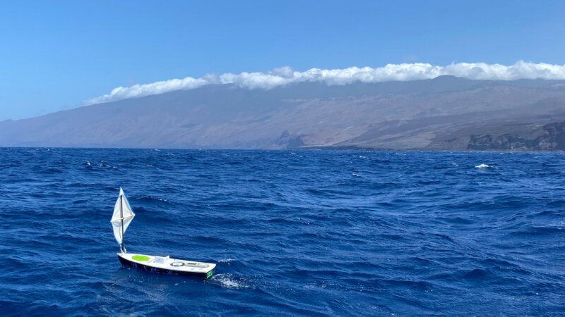 Este pequeño velero está equipado con un dispositivo GPS y un sensor de temperatura que es alimentado por un pequeño panel solar instalado en su cubierta.