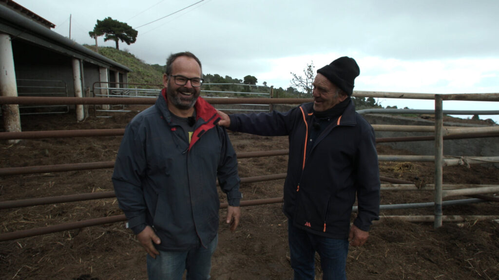 En el municipio herreño de El Pinar se encuentra la finca de Paco Febles y su hijo Héctor, especializada en vacuno ecológico. Más de 100 especímenes se crían en libertad en los cercados y laderas, aprovechando los recursos del entorno. Tanto, que un buen número de patos y ocas se encargan de tener a ralla a las moscas que molestan al ganado, en un círculo simbiótico en el que todos ganan.