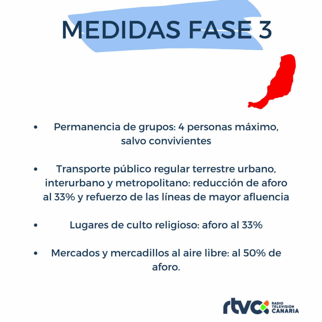 El resto de islas se mantienen una semana más en el mismo nivel de alerta en que se encontraban. Tenerife y Gran Canaria continúan en nivel de alerta 4, Fuerteventura en nivel 3, Lanzarote (donde epidemiológicamente se incluye La Graciosa), en nivel 2 y El Hierro en nivel 1.