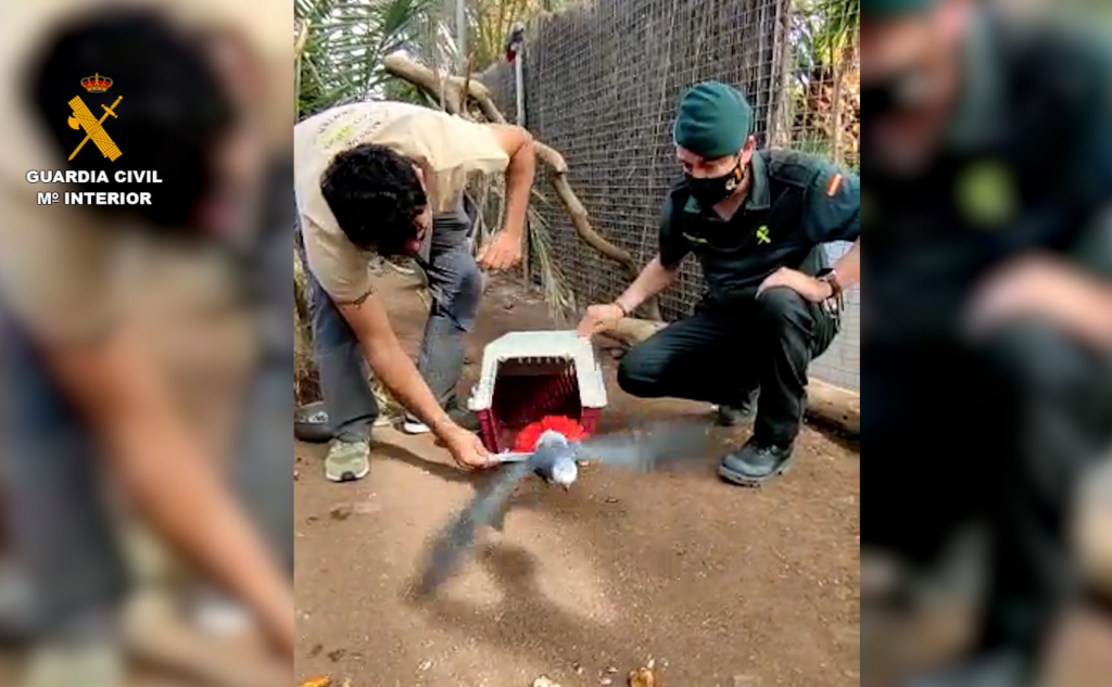 Para identificarla se solicitó la correspondiente colaboración al personal técnico del SOIVRE, de la dirección territorial de comercio de Las Palmas (Ministerio de Industria Comercio y Turismo) que emitió el correspondiente informe sobre los animales existentes: Un loro gris de cola roja, una cotorra jandaya y dos cotorras de cabeza negra.