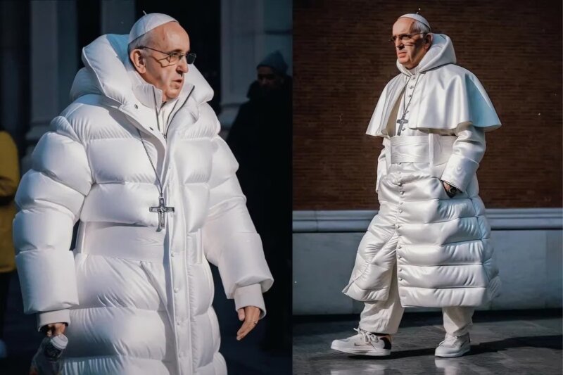 También hace solo unos días, un usuario de Reddit creó una imagen del papa Francisco con inteligencia artificial . La fotografía muestra al pontífice con una «parka» muy similar a un modelo de la firma de Balenciaga. Quedó especialmente bien y la subió a Twitter. La red social explotó y en sólo horas se tuiteó más de 27 millones de veces, a las que hay que sumar el alcance de las decenas de miles de cuentas que redistribuyeron la foto del “papa moderno”.