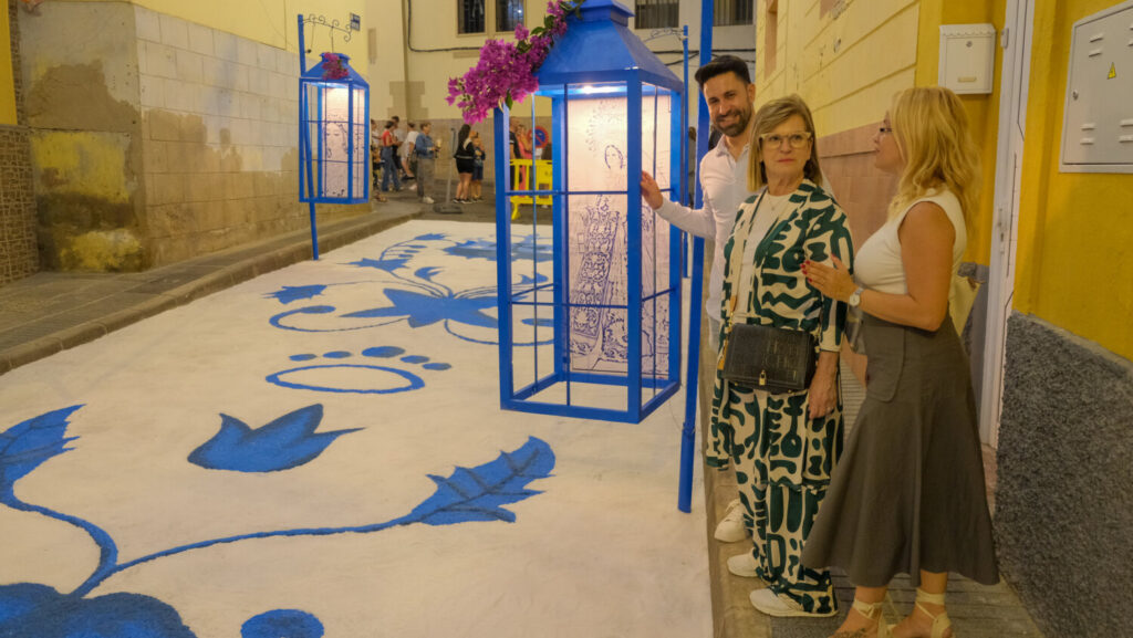 Durante el itinerario, en el que vieron los tapices acabados y dialogaron con la vecindad de La Isleta, ambos ediles estuvieron acompañados por el presidente de la Comisión de Fiestas, Alexander Arce, y miembros del colectivo.