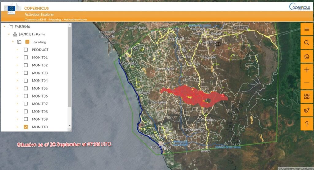 Estas estimaciones de Copernicus están realizadas antes de que en la noche del miércoles la lava avanzara y alcanzara el mar en el municipio de Tazacorte.