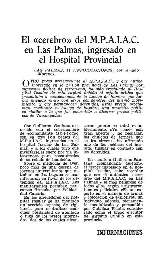 Una melodía que el artista dedicó en 1977 a varios presos del MPAIC (Movimiento por la Autodeterminación e Independencia del Archipiélago Canario) que se encontraban en huelga de hambre, recordando un capítulo significativo de la historia reciente de Canarias a través de la música.
