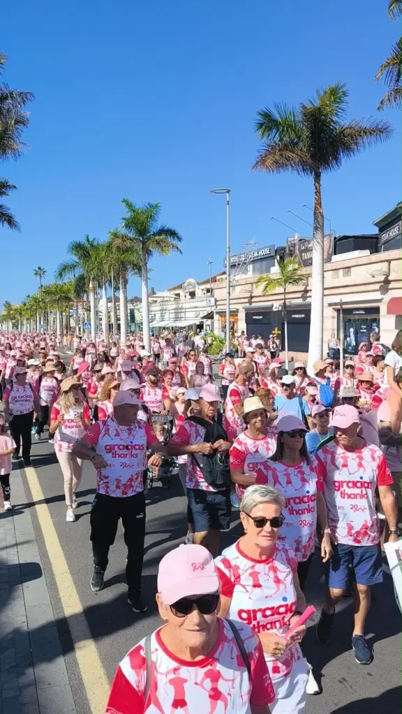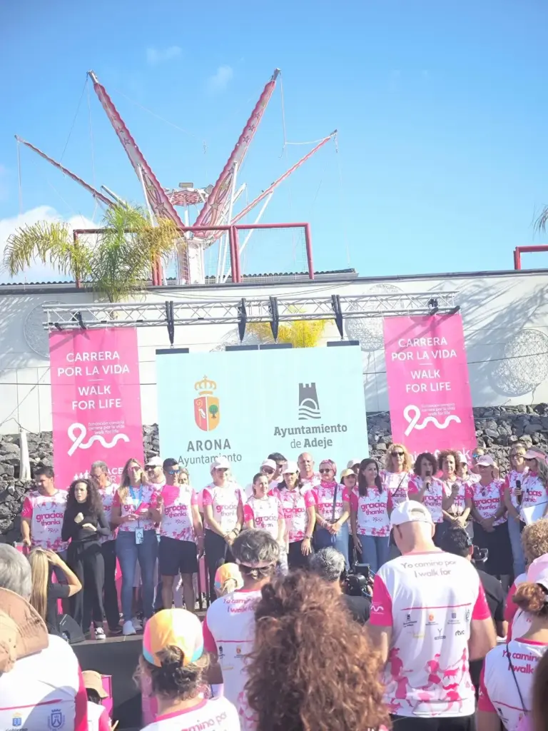 La marea rosa ha tomado las calles de Adeje y Arona este domingo. Se trata del vigésimo aniversario de la Carrera por la Vida. Un recorrido que congregó a miles de asistentes y que se consolida un año más como uno de los eventos solidarios más multitudinarios del sur de la isla.