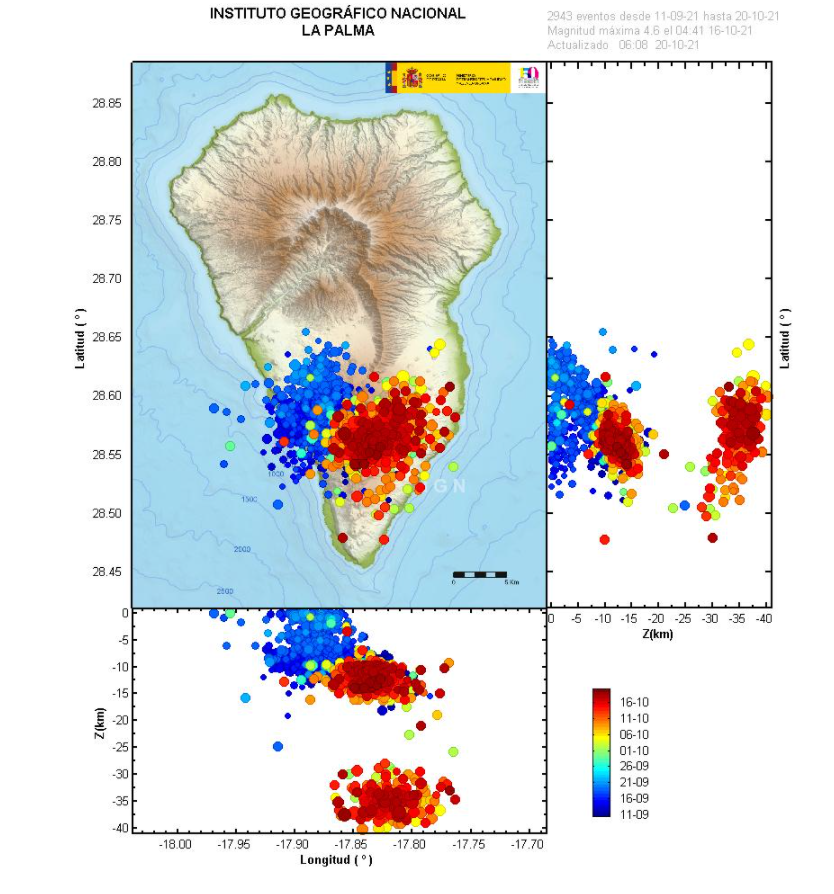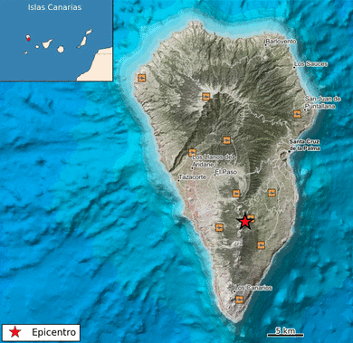La profundidad a la que se han producido los movimientos sísmicos localizados esta noche en La Palma ha oscilado entre los 9 y los 40 kilómetros.
