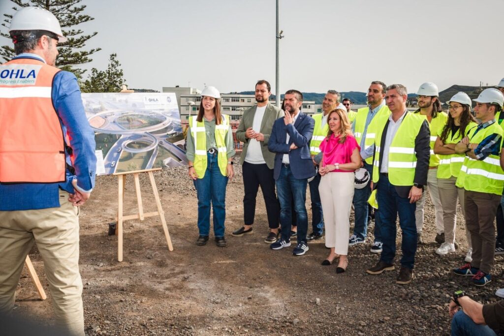 La presidenta insular ha visitado el lugar de la futura infraestructura, donde ya se encuentra instalado el primer módulo, junto al rector de la Universidad de La Laguna, Francisco Javier García, autoridades insulares, locales y un grupo de estudiantes de las Facultades colindantes a la conocida rotonda lagunera.
