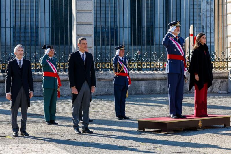 Sánchez no ha tomado la palabra, pero a través de un tuit se ha sumado al reconocimiento al Ejército: «En estos tiempos tan convulsos por la guerra provocada en Ucrania por Rusia, sois los garantes de nuestro estado de derecho. Gracias por vuestro compromiso al servicio de España, de la paz y la seguridad».