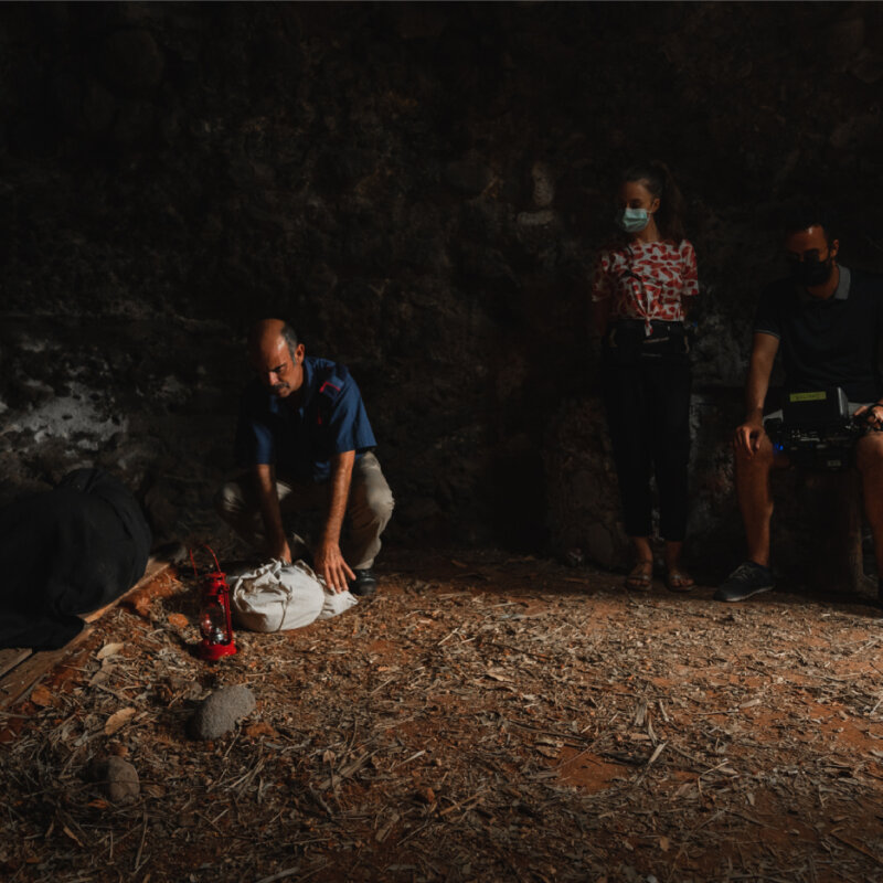 ‘La piel del volcán’ atraviesa tres épocas de la historia de Canarias, la etapa indígena durante el final de la Conquista, la posguerra franquista y la actualidad. Tres periodos entretejidos a través de una historia, la del descubrimiento de un yacimiento arqueológico, en Valsequillo, en el que aparecen dos cuerpos de distintas épocas. Uno de ellos, de los tiempos de la conquista, allá por el siglo XV, y otro, de la época de posguerra, en 1941.