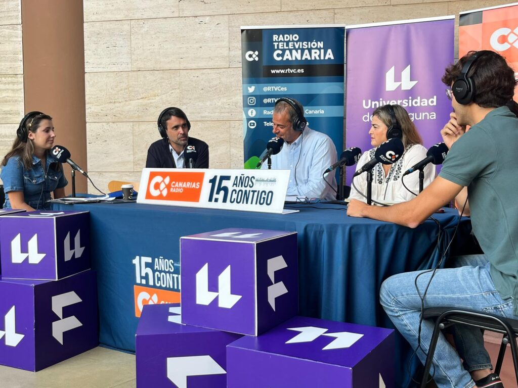 Los programas ‘De La Noche Al Día’, ‘Viva Mi Gente’ y ‘La Alpispa’ han sido los encargados de ofrecer esta experiencia. Durante seis horas y media de emisión continuada, han dado voz a profesores, catedráticos y alumnos de Periodismo de la ULL, además de directores de institutos y centros de formación que participan en estas jornadas.