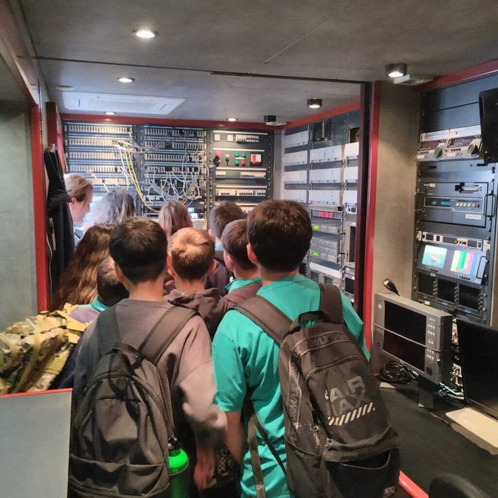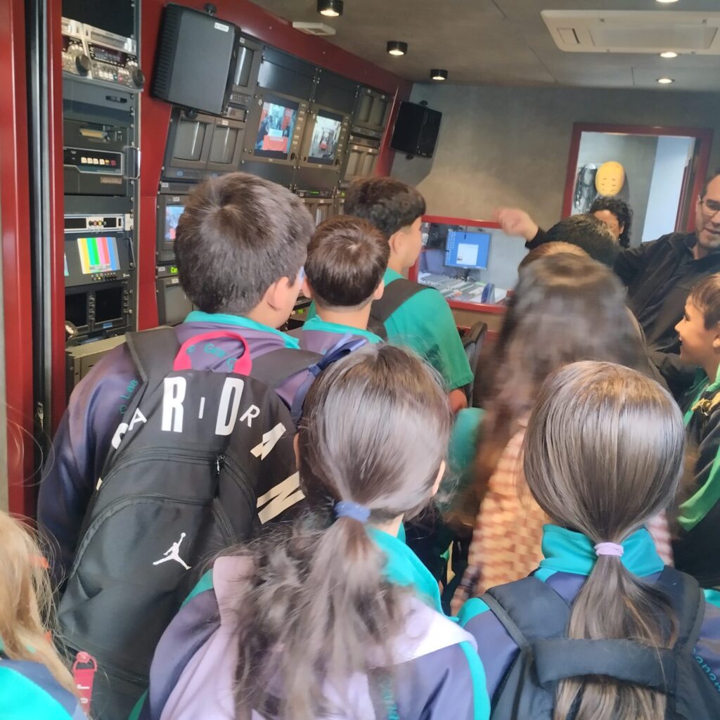 Durante la jornada, numerosos jóvenes se introdujeron en la unidad móvil para sorprenderse con sus pantallas y su característico sistema técnico, convirtiéndose el espacio en un aula improvisada en el que se intercambiaron preguntas y respuestas acerca de las tareas ordinarias del equipo técnico para la realización de una emisión de informativos.