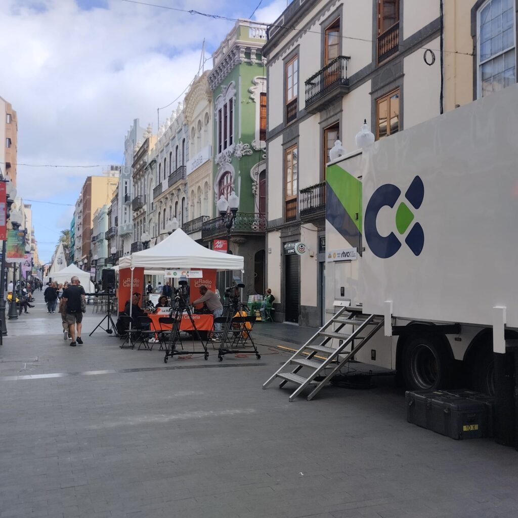 Radiotelevisión Canaria reforzó su implicación en esta cita radiofónica con su iniciativa «Campus RTVC«, que llevó la bandera de Televisión Canaria a la calle Mayor de Triana a través de la unidad móvil con el objetivo de dar a conocer los entresijos del funcionamiento de la televisión y de cómo se lleva a cabo un directo en un exterior.