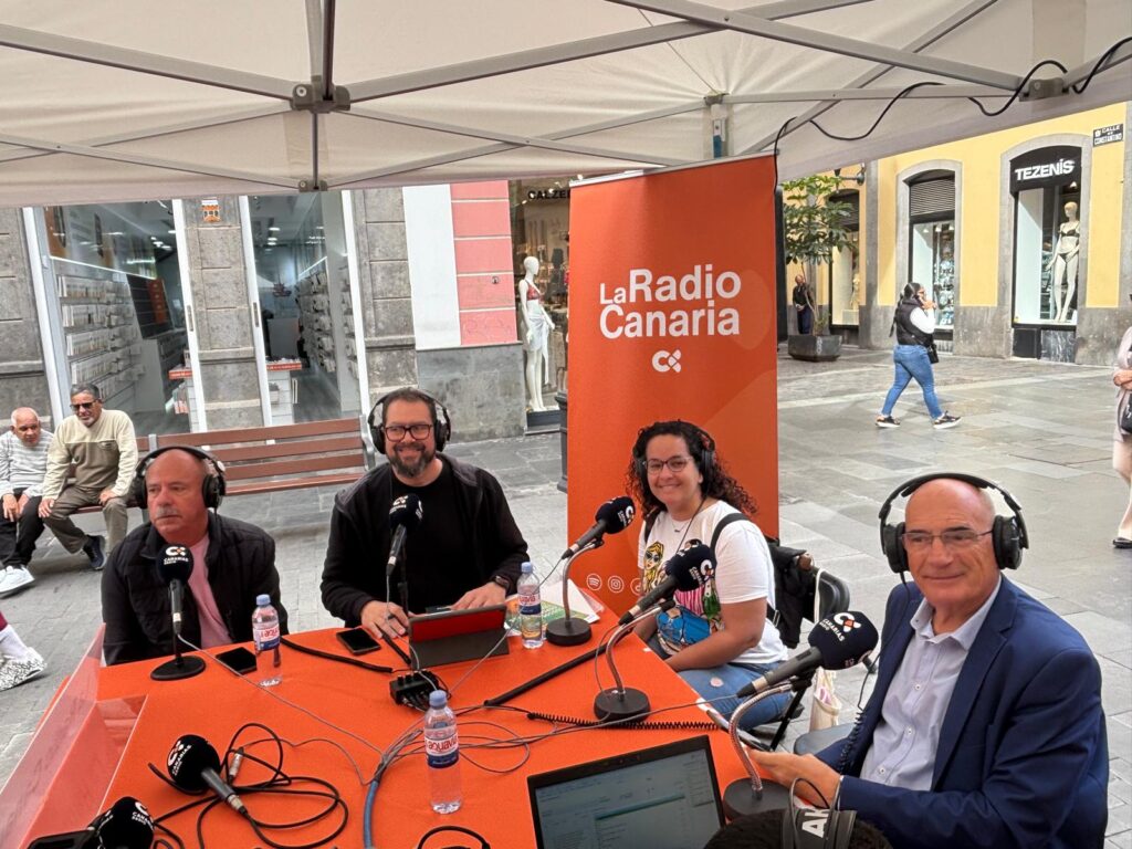 A las 10:00 horas la Radio Canaria empezó a sonar en directo desde la zona comercial de Triana con la emisión de los programas ‘Viva mi gente‘, con Alexis Hernández, y justo después, a partir de las 11:00 horas, con ‘La Alpispa‘, conducido por Eva Vega.