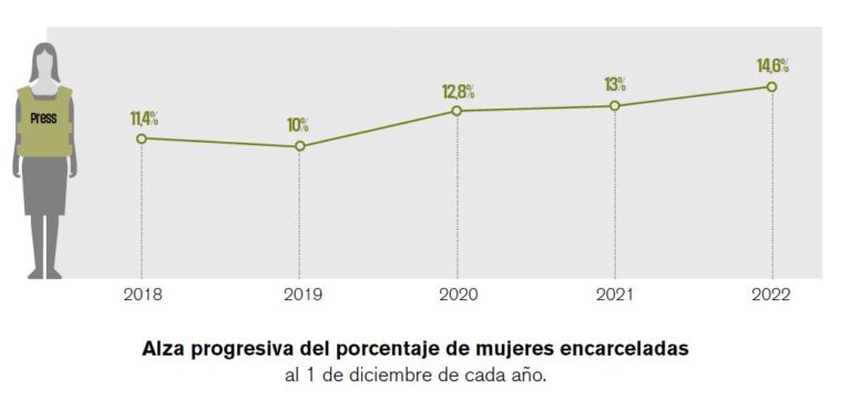 Un total de 533 profesionales se encuentran en prisión en diferentes lugares del mundo y 78 son mujeres. Se trata, según la entidad, de una cifra nunca antes vista y que la organización califica de «histórica». Si hace cinco años, el porcentaje de informadoras presas por el ejercicio de su profesión era de un 7%, en el 2022, el porcentaje ha ascendido hasta el 15%.