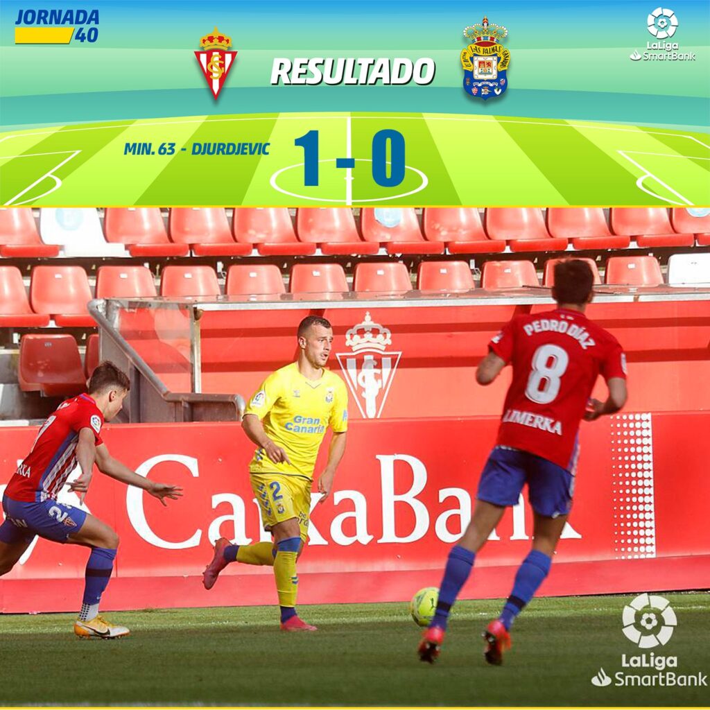 Uros Djurdjevic rompió su sequía goleadora y una diana suya sirvió para que el Sporting sumara los tres puntos ante la UD Las Palmas, que gozó de más ocasiones pero no las supo aprovechar, y continúe en puestos de promoción