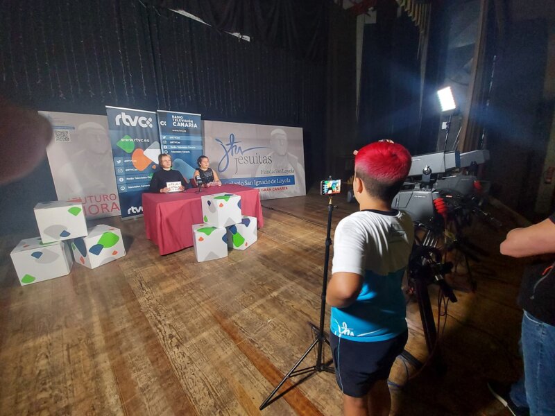 Durante las dos jornadas iniciáticas en el colegio San Ignacio de Loyola de Las Palmas de Gran Canaria, casi un centenar de escolares de 5º de Primaria pudieron ejercer de periodistas, técnicos de Imagen y Sonido y realizadoras/es.